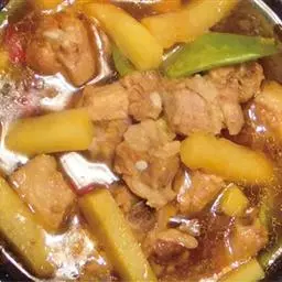 咖喱鸡是以鸡肉、土豆、咖喱粉、胡萝卜、洋葱为主要食材制作而成的一道菜肴。具备以咸鲜口味为主,略带甜辣,…