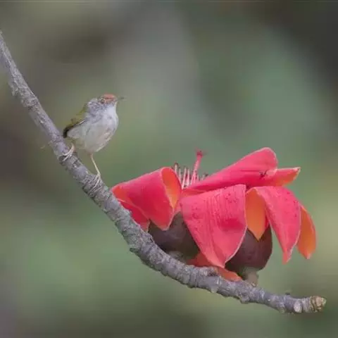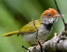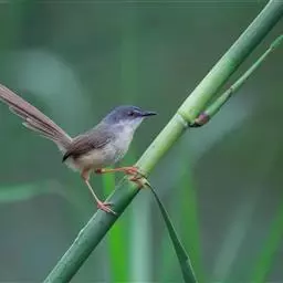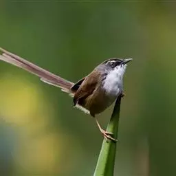 灰胸鹪莺(学名:Prinia hodgsonii):体长12厘米,是一种体型略小的灰褐色鹪莺。具略长的凸形尾。繁殖期成鸟:上体偏灰,飞羽的棕色边缘形成翼上的褐色镶嵌型斑纹;下体白,具明显的灰色胸带。非繁殖期的成鸟及幼鸟难与非繁殖期的暗冕鹪莺相区分,但浅色的眉纹较短;嘴较小而色深,尾端白色而非皮黄色。尾比褐头鹪莺短很多。