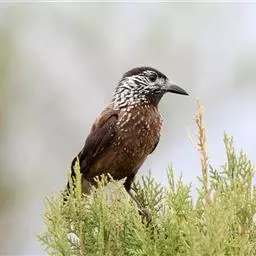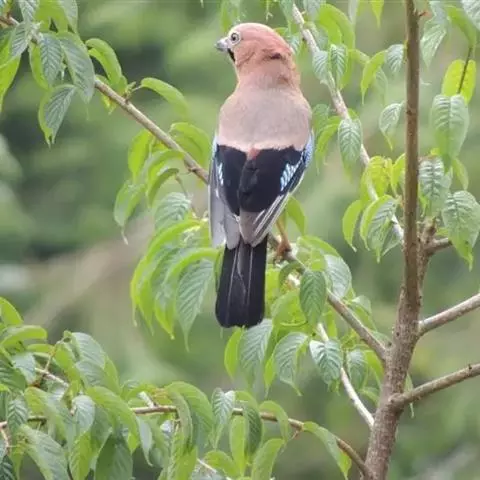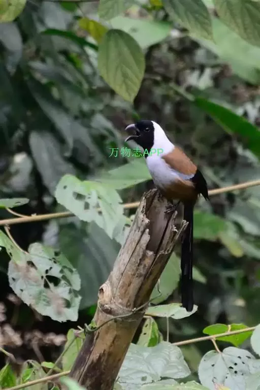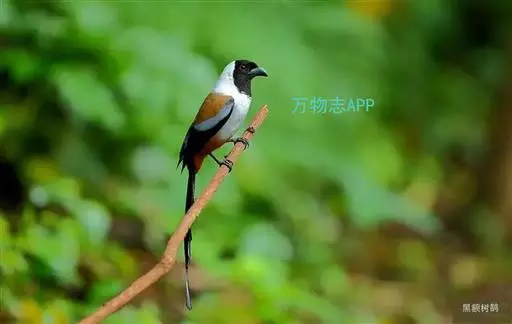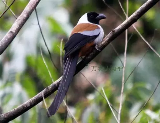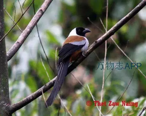 黑额树鹊(图7) 繁殖期4-6月,主要繁殖在山脚平原到海拔 2100m 的山地森林中,营巢于树上和灌木上,巢由枯枝和枯草构成。每窝产卵3-5枚。卵乳白色或淡红色,偶尔也有淡绿白色,被有灰褐色或红褐色斑点,尤以钝端较密,常常在钝端形成圈状或帽状。雌雄亲鸟轮流孵卵,雏鸟晚成性。