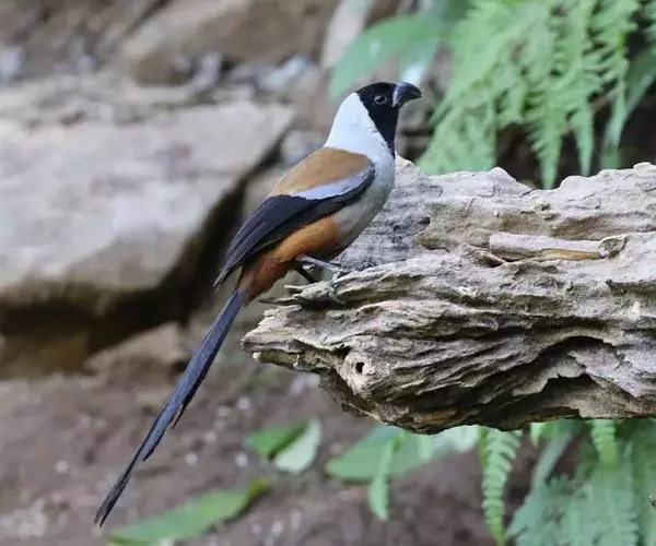 黑额树鹊(学名:Dendrocitta frontalis)是雀形目、鸦科的鸟类,体长约38厘米。黑色的尾甚长,上背、背、下腹及尾覆羽棕色。黑色的脸与灰色颈背及上胸成对比。与棕腹树鹊的区别在额、耳羽、喉及尾黑色,腰赤褐色。与灰树鹊的区别在腰赤褐色,翼上无白色点斑,尾近端处无浅色带。嘴黑色,较短,外形较厚重而弯曲较著;鼻须短而密致。体色复杂多色,有褐、白、灰或黑与蓝色;有时全身黑色。前额羽毛短而呈绒状。腿较短。分布于喜马拉雅山脉、缅甸北部及印度东北部低山,中国西藏东南部(墨脱)及缅甸-云南边境的高黎贡山有记录。