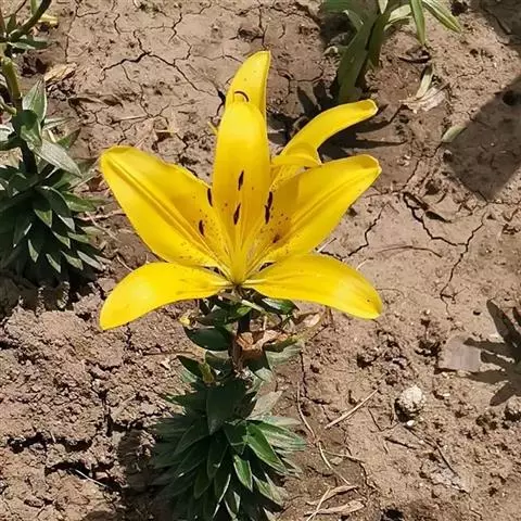 该变种与尖被百合的区别在于叶条形,共15-16枚,聚生于茎的中、上部;花黄色,具显著的紫色斑点。