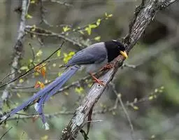 灰树鹊中型鸟类,体长多为31~39厘米。头顶至后枕灰色,其余头部以及颏与喉黑色。背、肩棕褐或灰褐色,…