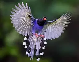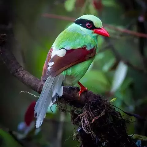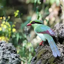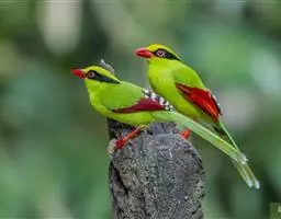 蓝绿鹊:中型鸟类,共有5个亚种。体长36-38厘米。尾长,嘴、脚红色。通体羽色主要为草绿色,…