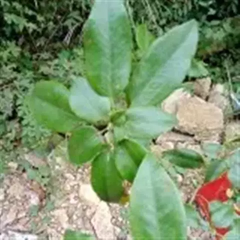 叶革质,密集枝顶,椭圆状披针形,长3-8厘米,宽1-2厘米,先端短渐尖,基部狭楔形,边缘在2/3以上具细圆齿,稀近于全缘,无毛,表面深绿色,背面淡绿色,主脉在两面凸起,侧脉在表面下陷,在背面不明显,小脉网状;叶柄长3-8毫米,腹面有深沟,背面圆形,微被柔毛。