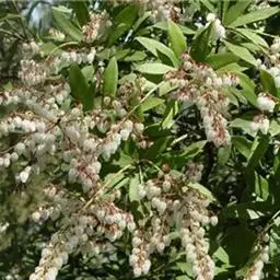 马醉木(学名:Pieris japonica (Thunb.) D. Don ex G. Don)是杜鹃花科,马醉木属常绿灌木或小乔木,高可达4米;树皮棕褐色,冬芽倒卵形,叶片革质,密集枝顶,无毛,表面深绿色,背面淡绿色,叶柄腹面有深沟,总状花序或圆锥花序顶生或腋生,直立或俯垂,花序轴有柔毛;萼片三角状卵形,花冠白色,坛状,无毛,花丝纤细,有长柔毛,子房近球形,无毛;花柱细长,蒴果近于扁球形,4-5月开花,7-9月结果。