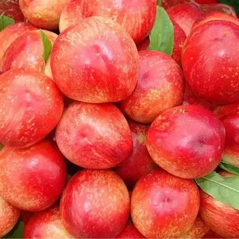 7、黄金:国外引进。晚熟种,单果重150克,果近圆,果顶圆,微凹,果皮金黄,阳面有玫瑰色红晕,皮较薄,可剥离。果肉黄,质细,柔软多汁,甜,有香气。鲜食加工兼用种,成熟期8月中下旬。