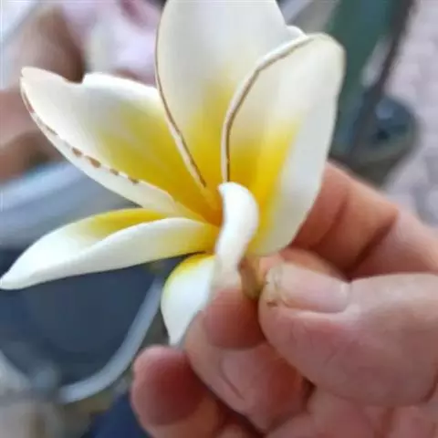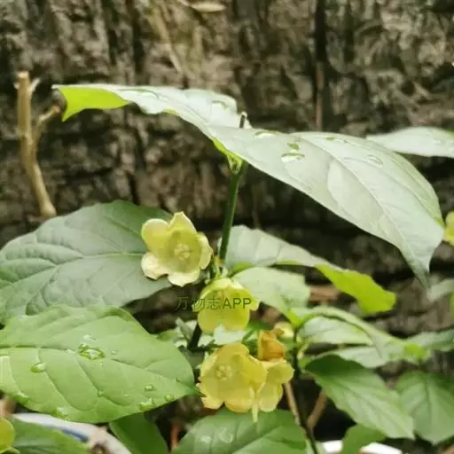 大纽子花 攀援灌木,具乳汁;茎皮淡灰色,具皮孔。叶纸质,宽卵圆形或倒卵圆形,顶端渐尖,基部圆形,长9-12厘米,宽4-8厘米,具有透明的腺体,叶面无毛,叶背被短柔毛;侧脉每边约8条,在叶背略为凸起;叶柄长0.5厘米,被短柔毛。花序为腋生伞房状聚伞花序,通常着花3朵,稀达6朵;总花梗不分枝,长1-1.5厘米;花梗长1-2厘米,密被柔毛;小苞片长圆状披针形,长0.5-0.7厘米;花土黄色,花萼裂片长圆状卵圆形,长1-1.5厘米,被柔毛;花冠筒长8毫米,内外面均被短柔毛,冠檐展开,直径达4厘米,裂片圆形,顶端具细尖头,长0.7厘米,宽1-1.2厘米;花药伸出花喉之外,花丝短,背面被疏短柔毛,药隔基部背面具圆形腺体;子房和花柱被疏柔毛,柱头斜圆锥形,心皮离生,胚珠每室多颗;花盘杯状,顶端具缘毛。蓇葖2,平行,披针状圆柱形,顶端锐尖,暗灰色,长7-9厘米,直径约1厘米;种子黄褐色,线状长圆形,基部截形,长1.5厘米,直径2毫米,顶端具丝质种毛;种毛长2.2厘米。花期3-6月,果期秋季。