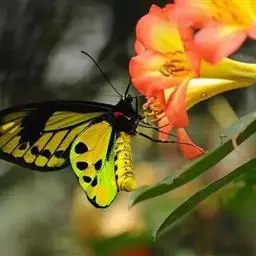 金裳凤蝶是凤蝶科、裳凤蝶属的动物。金裳凤蝶身体呈黑色,头、颈和胸侧有红毛,腹部有黑黄两色相间条纹,…