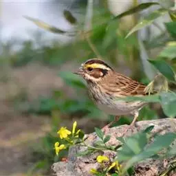 黄眉鹀是雀形目鹀科鹀属鸟类,体型中等偏小。雄鸟头部主要为黑色,冠纹白色,眉纹前段黄色而后段白色,…