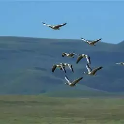 雪雁是鸭科雁属鸟类,雁属中体形大,个体重的鸟类。羽毛洁白,翼角黑色。飞行时双翼拍打用力,振翅频率高。…