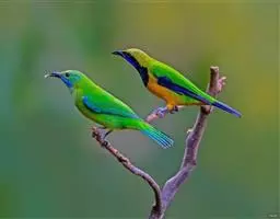 橙腹叶鹎体形大小和金额叶鹎相似,体长16~20厘米。额至后颈黄绿色,其余上体绿色,小覆羽亮钴蓝色,…