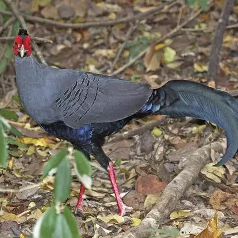 蓝马鸡是珍稀名贵的禽类,羽毛美丽,可作装饰用,头侧绯红,耳羽簇白色、突出于颈部顶上,通体蓝灰色,…
