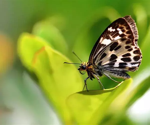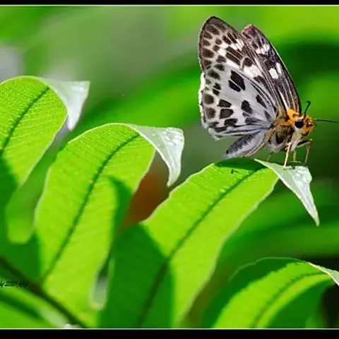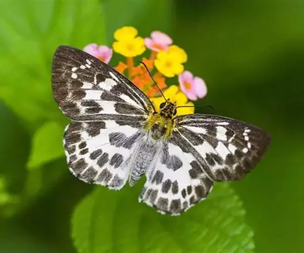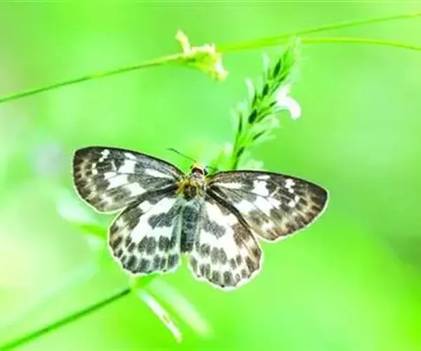 1、成虫:白弄蝶为中小型蝶种,展翅约为 40-45mm,翅表色泽、花纹特殊,无其他外观相似者。成虫前翅外观为三角形,外形横长。后翅形状为水滴形,接近三角形。雌蝶翅形较为宽圆。成蝶翅表底色为白色,翅表布满灰绿色斑纹。成虫寿命为 1-2 个月。