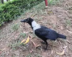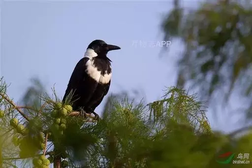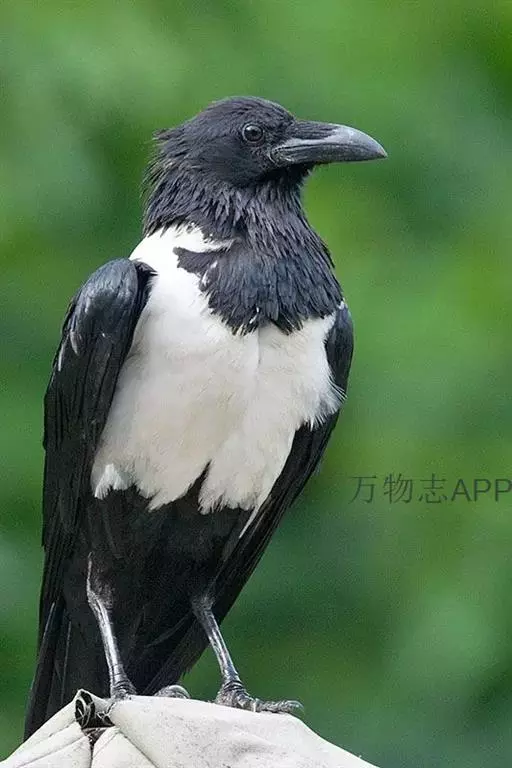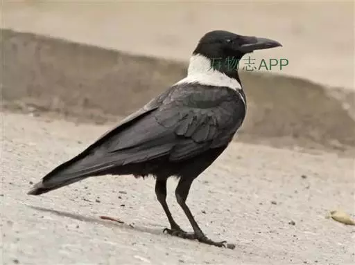 白颈鸦(学名:Corvus pectoralis):除颈背和胸有一白圈外,其余体羽全黑。 成鸟的后头、翕的上部延伸至上胸白色,这些白羽基部灰色,羽轴亦灰色;其他体羽黑色;喉羽披针状;头和喉闪淡紫蓝光泽;初级飞羽外翈闪淡绿光泽。雌雄同色。幼鸟羽色与成鸟相似,但白色部分不著,而显土黄或浅褐色;黑色部分暗纯,且无紫绿色闪光。 虹膜褐色;嘴、跗蹠、趾、爪均黑色。