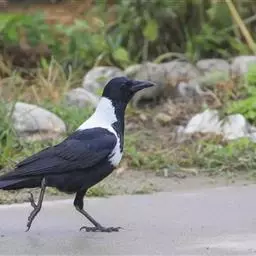 白颈鸦常见于平原、丘陵和低山,也见于海拔2500米左右的山地。多栖于开阔的农田、河滩和河湾等处,在地上,特别在新耕和施肥地上,缓步觅食。