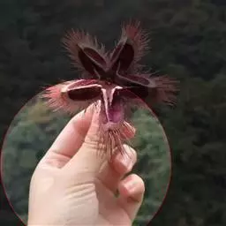 飘带兜兰 生于海拔1000-1100米的林中树干上。
