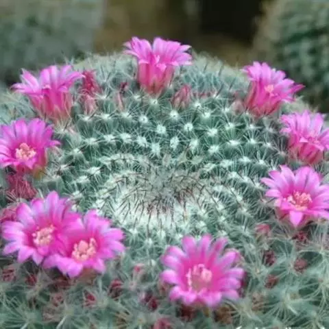 银手球,仙人掌科乳突球属,植株群生,小短圆筒形。原产墨西哥伊达尔戈州。