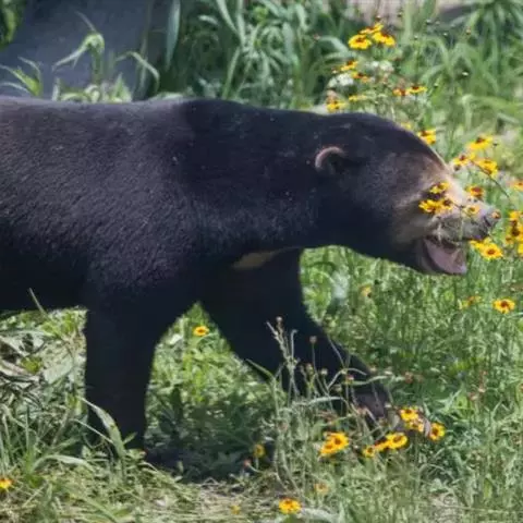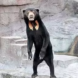 马来熊,是食肉目熊科马来熊属哺乳动物。体胖颈短,眼睛和耳朵小;头部短圆;全身乌黑光滑;鼻唇周为棕黄色,…