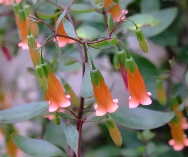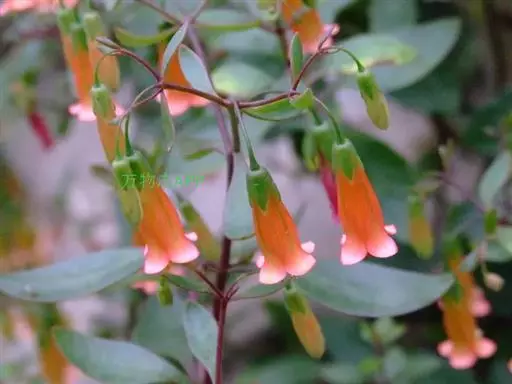 枝柔软常下垂,叶对生,长卵形,稍具肉质。花红色,管状,先端4瓣稍分开,其外形酷似小提灯故此得名宫灯长寿花。
