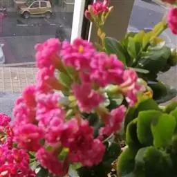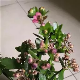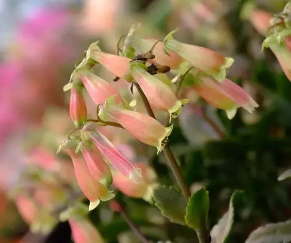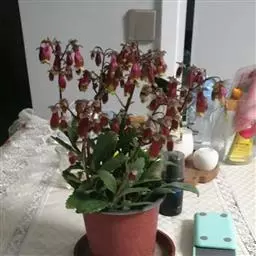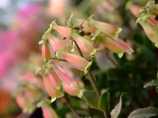 宫灯长寿花(大宫灯)是景天科伽蓝菜属,也叫红提灯,蔓生吊钟海棠,为多年生草本植物,茎木质化,多分枝,新生分枝柔软常下垂,叶对生,长卵形,稍具肉质,花淡红色,管状,先端4瓣稍分开,其外形酷似小提灯故此得名宫灯长寿花。
