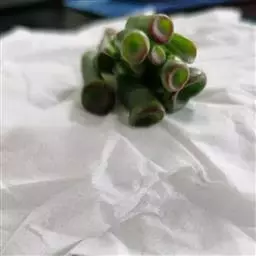 宫灯长寿花作切花时,应在茎的最下部3朵花完全绽放并呈金黄色时切收。茎干枯黄后,将块茎挖起,贮藏于3~5℃的冷室中。挖起的块茎洗净后,用多菌灵或百菌清等药剂消毒,可减少病害的发生。