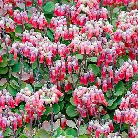 大宫灯长寿花为景天科伽蓝菜属,也叫珍珠风铃(Pearl Bell )、灯笼菜,为多年生草本植物.茎木质化,多分枝,新生分