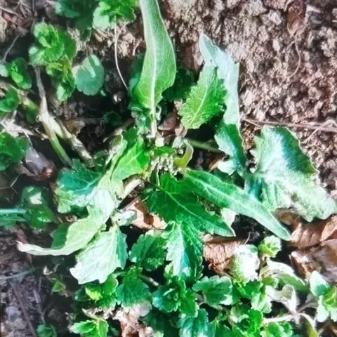 叶质较厚,下部叶密集,大头羽状分裂,长5-10厘米,宽2.5-6.5厘米,顶生裂片大,宽卵状三角形,顶端钝或近圆形,具不规则的齿,侧生裂片通常1对,长圆形或长圆状披针形,顶端钝或尖,具波状齿,上面深绿色,下面常变紫色,两面被短卷毛;中部茎叶疏生,较小,卵状披针形或长圆状披针形,无柄,基部箭状抱茎,顶端急尖,全缘或有不规则细齿;上部叶少数,线形。