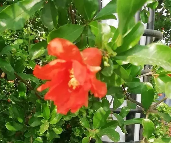 盛开的石榴花 石榴花常用扦插、分株和压条繁殖。扦插,春季选二年生枝条或夏季采用半木质化枝条扦 插均可,插后15~20天生根。分株,可在早春4月芽萌动时,挖取健壮根蘖苗分栽。