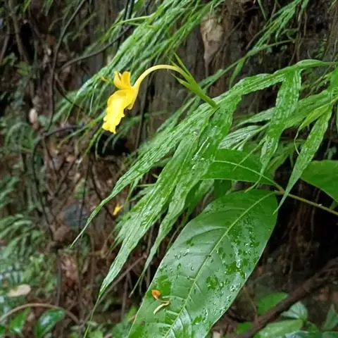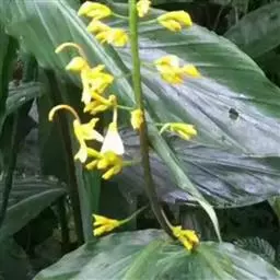 舞花姜,姜科舞花姜属多年生草本植物。茎的基部膨大、纤细;叶片为长圆形或卵状披针形;花朵黄色,…
