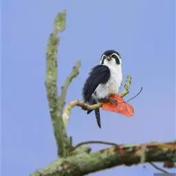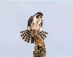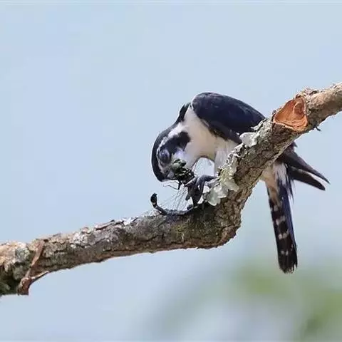2016年9月21日,来自中国各地的“鸟友”云集婺源拍摄珍稀鸟类。面对镜头,国家二级保护动物白腿小隼毫不怯场,卖萌的神态惹人怜爱。说其可爱,是因为它的模样有点像大熊猫,所以人们称它为“熊猫鸟”、会飞的“熊猫”。 鸟类专家告诉江南都市报全媒体记者,它大小和麻雀相仿,却能猎杀比它大几倍的猎物,号称世界上最小猛禽。白腿小隼数量极少,国外已难觅其芳踪,国内也只有婺源留住了这近濒危的鸟类,已被列入联合国《濒危野生动物名录》。婺源县加大珍稀鸟类保护力度,给来自世界各地鸟类爱好者提供了极好的观赏、拍摄机会,当地群众也从良好的生态环境中分享到“生态红利”。