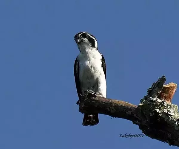 白腿小隼(学名:Microhierax melanoleucos)是小型猛禽,体长170-190毫米,体重50克左右。体形大小与红腿小隼差不多,羽色与红腿小隼有很大的不同,尤其是下体。头部和整个上体,包括两翅都是蓝黑色,前额有一条白色的细线,沿眼先往眼上与白色眉纹汇合,再往后延伸与颈部前侧的白色下体相汇合,颊部、颏部、喉部和整个下体为白色。尾羽也是黑色,只有外侧尾羽的内缘具有白色的横斑。虹膜亮褐色,嘴暗石板蓝色或黑色,脚和趾暗褐色或黑色。
