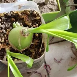 鳞茎卵球形,表面光滑,绿色,具膜质鳞茎皮,直径可达10厘米。 [1-2]