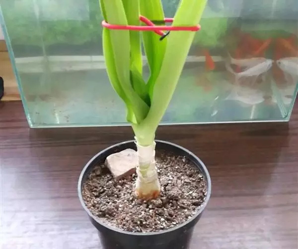 随着鳞茎的长大,叶片跟着伸长,为了使植株紧凑优美,必须改造叶片。改造时将叶片剪短约2/3,剪口力求多样化和艺术化,可根据需要将末端剪成椭圆形或楔形(羊角形等,但不可平剪)。这祥株形紧凑、奇特、大方。