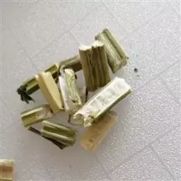 粉末草绿色,气孔圆形或椭圆形,副卫细胞4个,长梭形,多破碎。草酸钙针晶成束,多碎断。淀粉粒多成群分布,单粒,圆球形和长圆形,脐点点状、人字状、裂缝状,层纹清楚。纤维长条状。