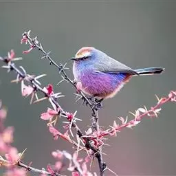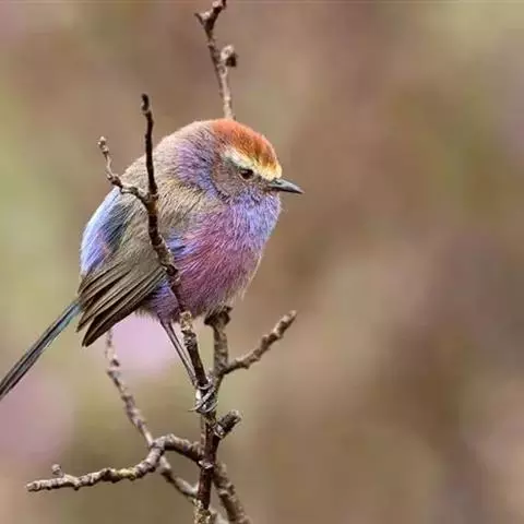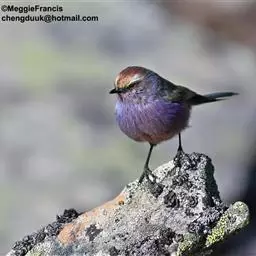 花彩雀莺:体长9-12厘米,是一种毛茸茸偏紫色的雀莺。顶冠棕色,眉纹白。尾长,羽毛松软。…
