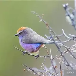 凤头雀莺:小型鸟类。体长9-10厘米,雄鸟呈毛茸茸的紫色和绛紫色,顶冠淡紫灰色,额及凤头白色,尾全蓝。…