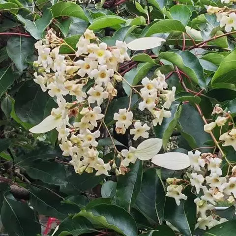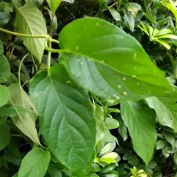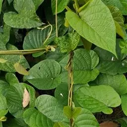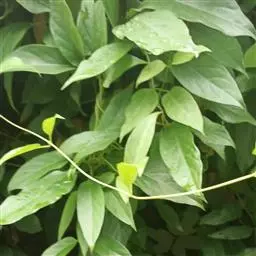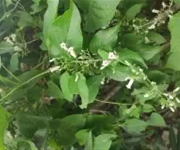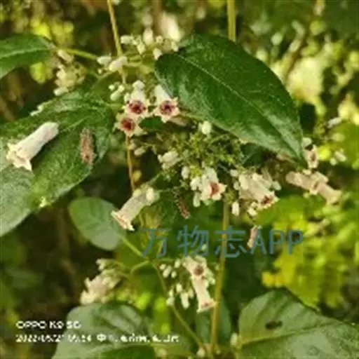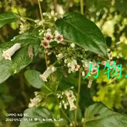 鸡屎藤,多年生草质藤本。其茎呈扁圆柱形,稍扭曲,无毛或近无毛,老黄牛茎灰棕色,直径3 鸡屎藤 -12mm,栓皮常脱落,有纵皱纹及叶柄断痕,易折断,断面平坦,灰黄色;嫩茎黑褐色,直径 1-3mm,质韧,不易折断,断面纤维性,灰白色或浅绿色。叶对生,多皱缩或破碎,完整者展平后呈宽卵形或披针形,长5-375px,宽2-150px,先端 尖,基部楔形,圆形或浅心形,全缘,绿褐色,两面无柔毛或近无毛;叶柄长1.5-175px,无毛或有毛。聚伞花序顶生或腋生,前者多带叶,后者疏散少花,花序轴及花均被疏柔毛,花淡紫色。其喜温暖湿润的环境,常生于溪边、河边、路边、林旁及灌木林中,常攀援于其他植物或岩石上。