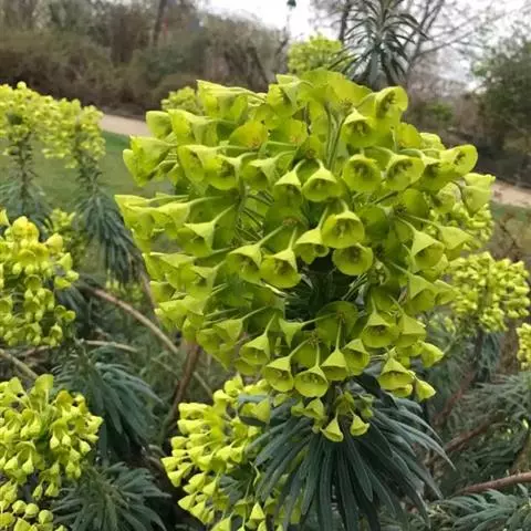 常绿大戟以丛生灌木的形式生长,具有很多茎,在杯状聚伞花序上具有典型的黑色或是深棕色蜜腺。…