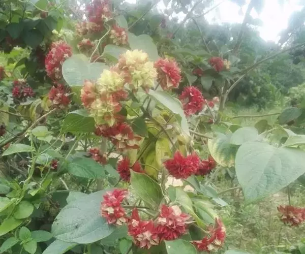 红萼龙吐珠马鞭草科大青属常绿木质藤本。叶对生,纸质,具柄,卵状椭圆形,全缘,先端渐尖,基部近圆形。…