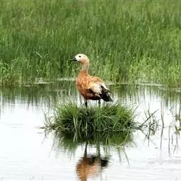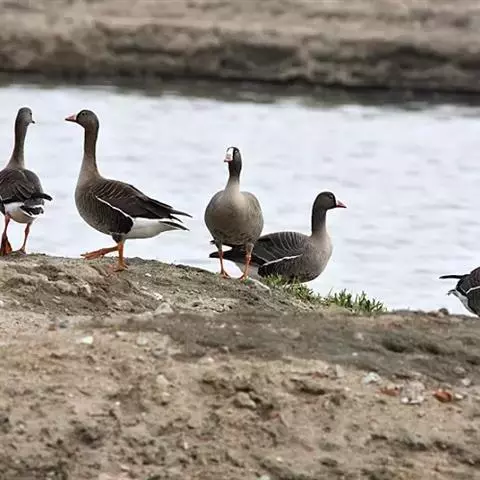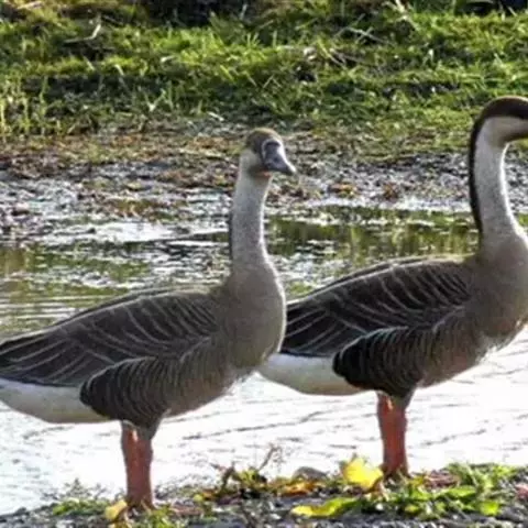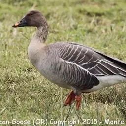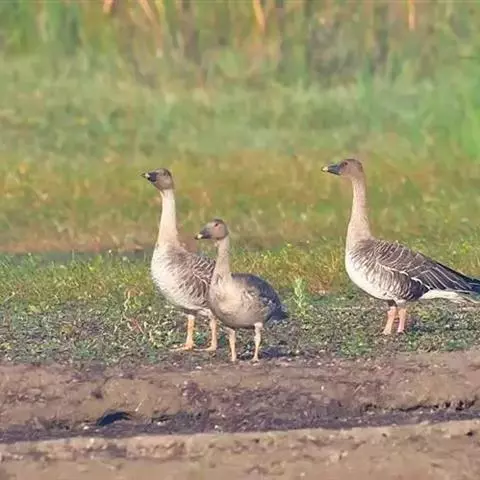 豆雁,雁形目鸭科。成鸟头、颈、背灰褐色,带淡黄色羽缘;尾上覆羽白色,尾羽黑褐色带白端,…