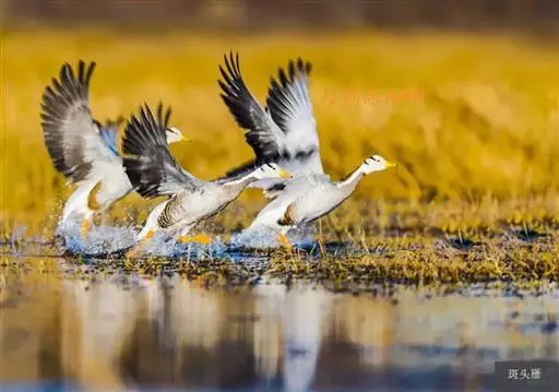 3月中旬开始从中国南部越冬地迁往北部和西北部繁殖地,到达繁殖地的时间最早在3月末至4月初,最迟在4月中下旬。迁徙时多呈小群,通常20-30只排成‘人’字形或‘V’字形迁飞,边飞边鸣,鸣声高而洪亮,声音似‘hang-hang-’。秋季南迁在9月初开始,一直持续到10月中下旬。迁徙多在晚上进行,白天休息和觅食。有时白天亦进行。迁徙路线较为固定,从西北高原繁殖地经唐古拉山口迁往南部越冬地,如遇天气变化,气候恶劣,山口风力强大时,常常在山口周围云集数千只受阻的斑头雁,直到气候好转时才飞越过去。