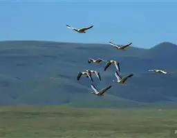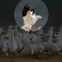 雪雁是鸭科雁属鸟类,雁属中体形大,个体重的鸟类。羽毛洁白,翼角黑色。飞行时双翼拍打用力,振翅频率高。…