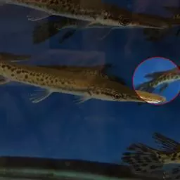 红尾护头鲿,商品名:军舰鸭嘴、红尾鸭嘴鲶鱼、红尾鲶鱼、狗崽鲸、狗仔鲸、红尾猫.分布于亚马逊河与奥里诺科河流域,是一种常见的观赏性鱼类。