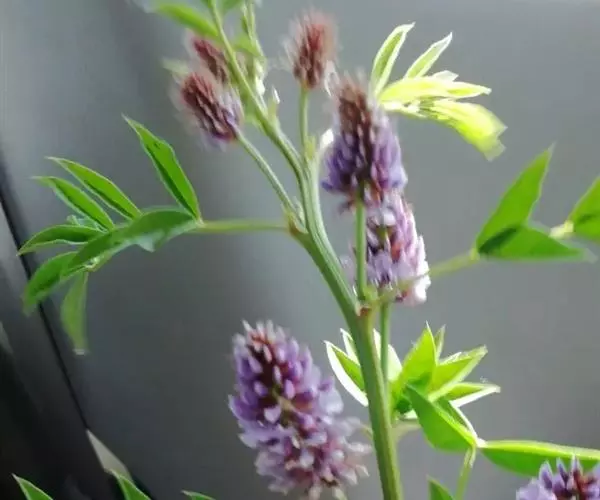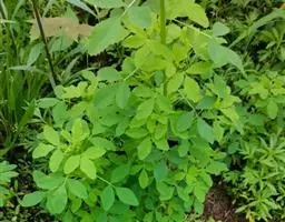 多年生草本。根和根状茎无甜味。茎直立,多分枝,高1-1.5米,具条棱,密被黄褐色鳞片状腺点,几无毛。叶长6-20厘米;托叶披针形,长约5毫米;叶柄无毛,密生腺点;小叶9-15枚,披针形或卵状披针形,长2-6厘米,宽1.5-2厘米,上面深绿色,下面淡绿色,两面均密被鳞片状腺体,无毛,顶端渐尖,具短尖,基部楔形,边缘具微小的钩状细齿。