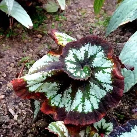 由漆斑菌引起的秋海棠叶斑病症状:病症一般出现在秋海棠叶片边缘、叶尖和破损叶片的叶脉上。坏死区域呈现黑褐色,然后是水渍状。诊断方法是下部的叶片经常会不规则形状的孢子群,中央呈黑色,但边缘为白色。