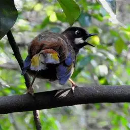 灰腹噪鹛是画眉科、噪鹛属鸟类。中型鸟类,体长21-25厘米。额黑色,头顶黑或灰色,眼先、脸白色。…