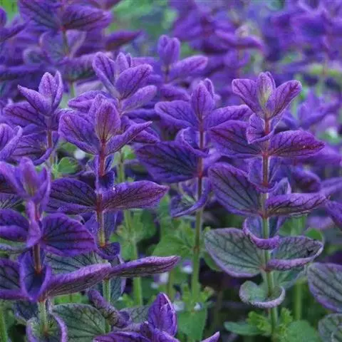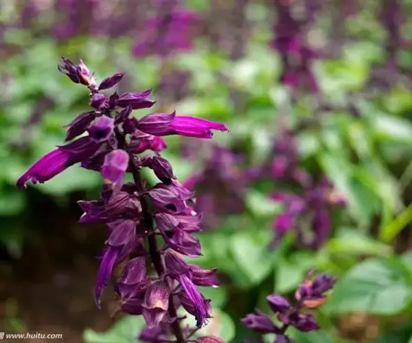 唇 形科鼠尾草属,直立一年生草本,全株具长软毛,株高30~50cm。具长穗状花序,花小,长约12cm,紫、堇、雪青等色。有多数变种,花色美丽。