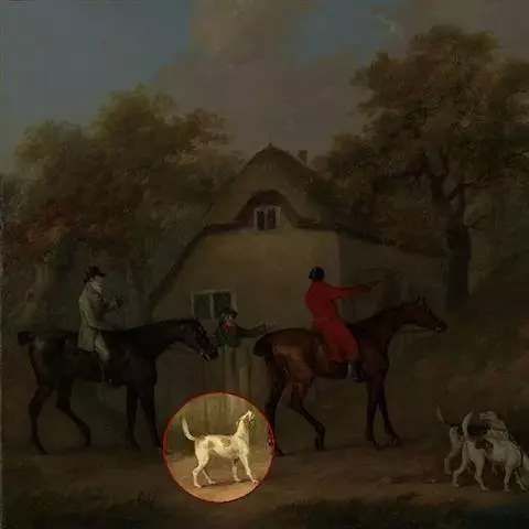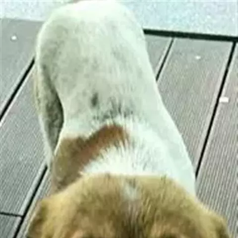 耳:两耳间距小、薄,呈V字形下垂、耳尖钝圆,耳长至咀角处。 鼻:宽阔,鼻镜黑色,白色犬允许肉色。