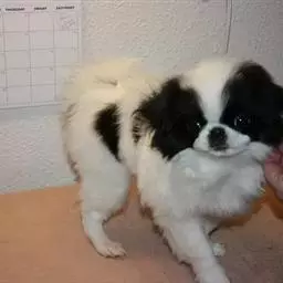 日本狆是极小型犬;被毛长而丰厚,不弯曲;毛色为白色底,带黑色或栗色斑块,…