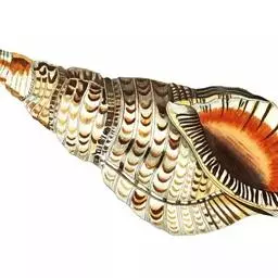 法螺:也称大法螺。贝壳大。壳高351.0毫米,壳宽170.0毫米。螺层约10层。缝合线浅。螺旋部高,…